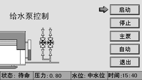 在主畫面上,按給水泵進入“給水泵操作”畫面。如圖 4 所示。