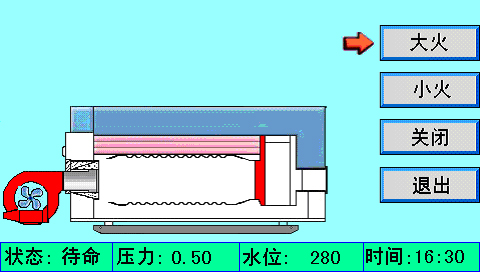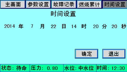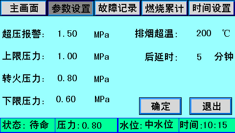 主畫面上同時顯示控制器狀態(tài)、系統(tǒng)壓力、水位、時間、燃燒器狀態(tài)、泵狀態(tài)等。