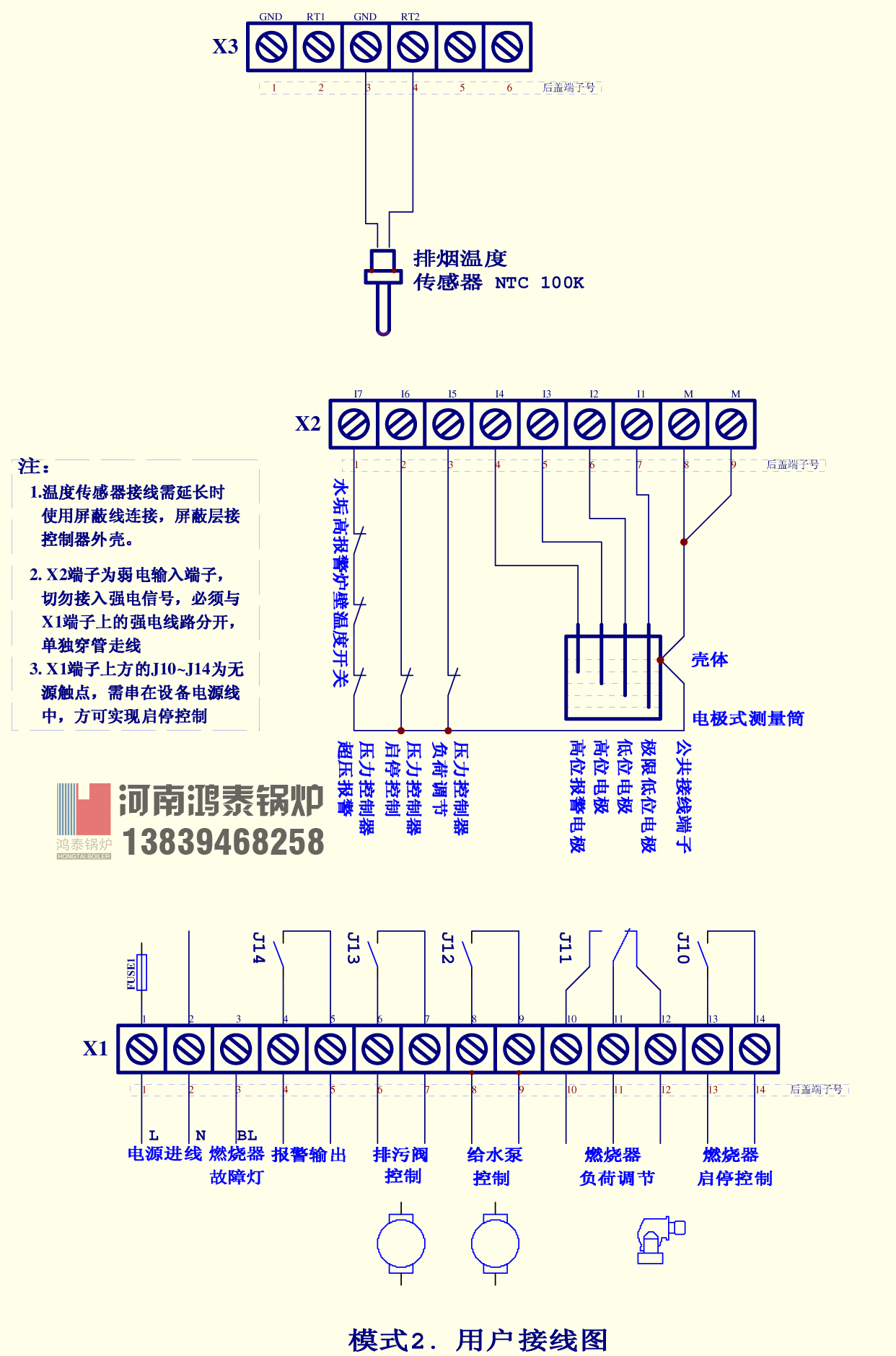 ① 燃燒器控制輸出為繼電器常開觸點的兩端,無電源輸出。