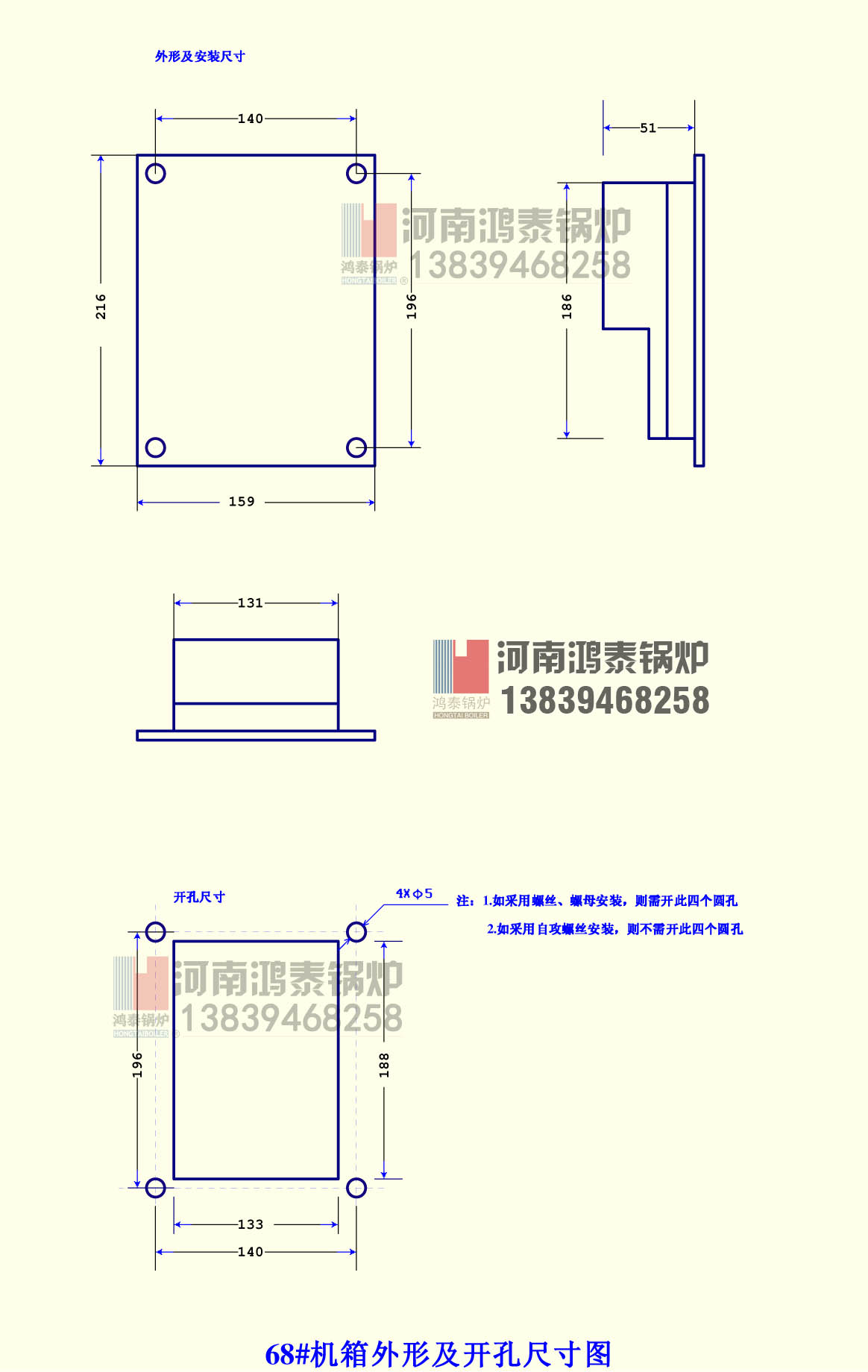 ①按“外形及開孔尺寸圖”開安裝孔,將需接電線從開孔處穿出。