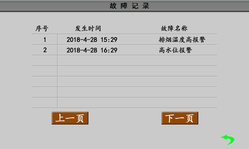 控制器開機(jī)后即不間斷地對(duì)溫度傳感器、壓力傳感器、水位傳感器以及自身電路進(jìn)行檢測(cè),檢測(cè)到故障時(shí),立即發(fā)出聲光報(bào)警并聯(lián)鎖關(guān)閉燃燒器或加熱組和水泵等設(shè)備。并在屏幕下方的工況欄中,顯示出具體的報(bào)警信息。