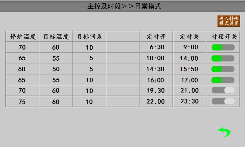 日常模式操作界面 特殊模式操作界面 公共參數(shù)設(shè)置界面